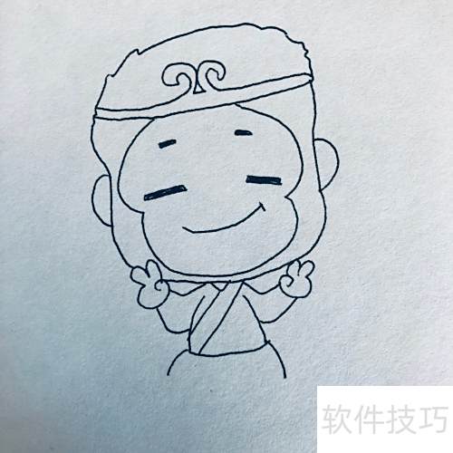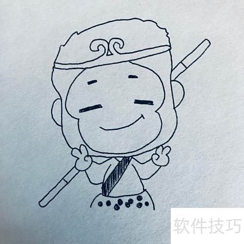 1、 先画出孙悟空的面部表情。