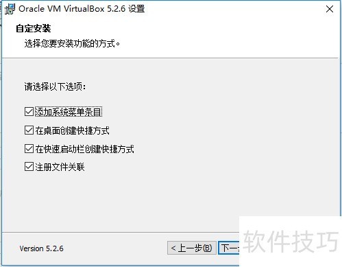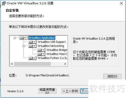 5、 建议将Virtual Box安装在非系统盘的目录下,如D:Program FilesOracleVirtualBox。安装过程中其余选项可保持默认设置,也可根据个人需求自定义组件安装,但新手建议谨慎操作,避免误选不必要的功能,确保安装过程稳定顺利。