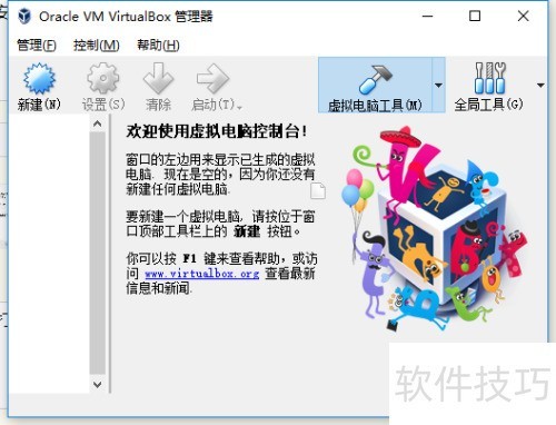 8、 安装后首次启动界面所示,左侧区域为空白,表示尚未创建任何虚拟机。