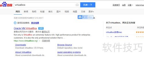 1、 在百度搜索VirtualBox,点击第一个结果进入其官网。