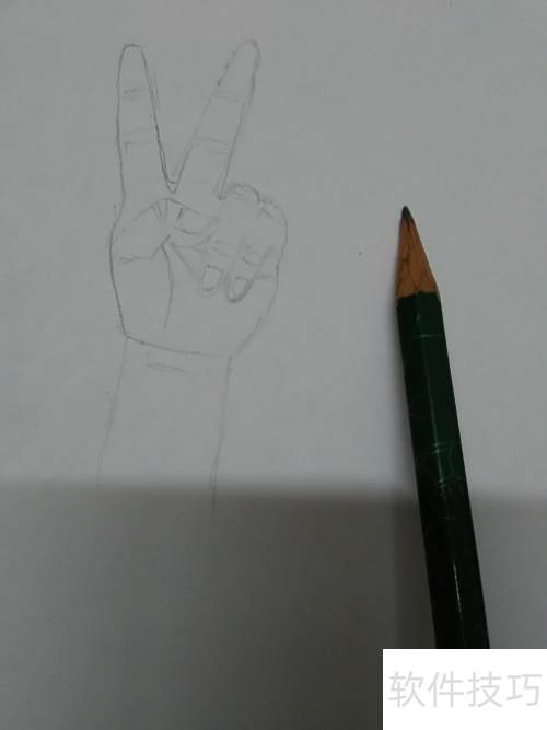 1、 先简单勾勒剪刀手轮廓,仅描绘外边缘线条。