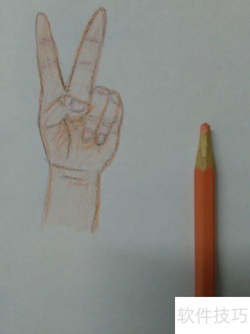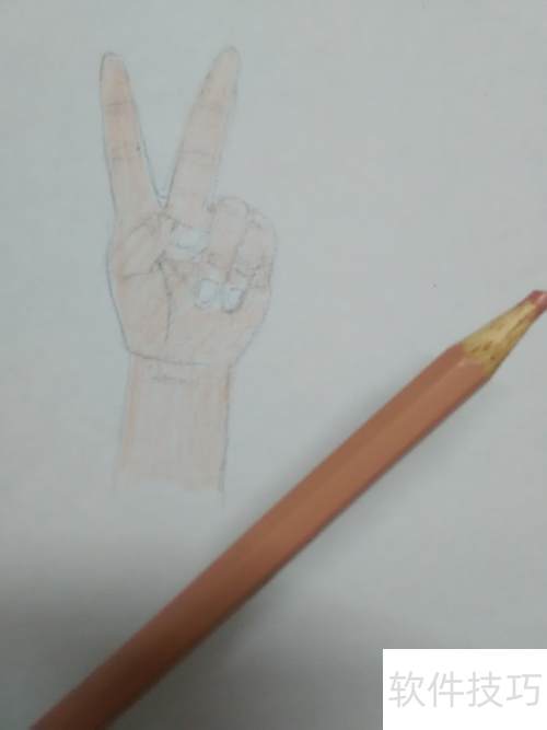 6、 用深肉色涂抹指尖、手掌及手腕,遮挡处需加重颜色。