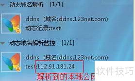 7、 添加动态域名解析后,可实时查看解析记录及本地公网IP的监控信息。