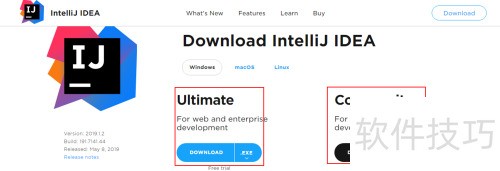 2、 根据个人需求选择下载IntelliJ IDEA版本,旗舰版提供30天免费试用,社区版则完全免费,两者功能有所区别,请按实际需要进行选择。