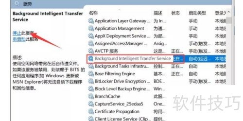 3、 找到后台智能传输服务,点击停止按钮即可。