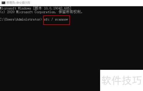 3、 在命令提示符界面输入sfc /scannow后按回车键执行。
