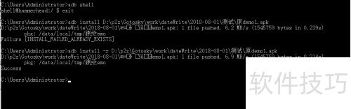 6、 安装失败时,可尝试使用 adb install -r 加文件路径重新安装。