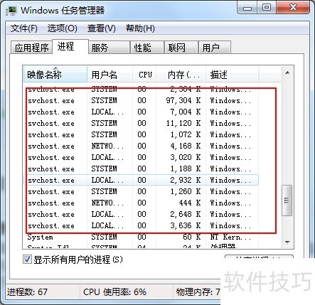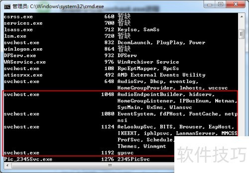 7、 通过命令行查看svchost.exe进程运行情况
