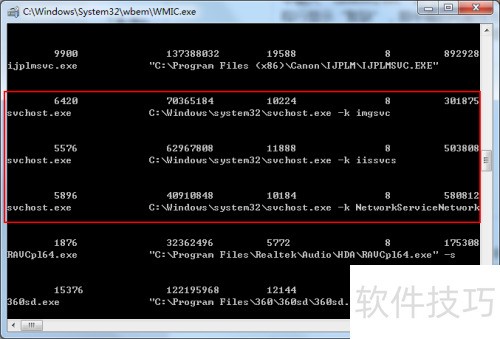 10、 按下Win+R键打开运行窗口,输入wmic并回车。进入命令行后键入process,即可列出所有svchost.exe进程的完整路径。通过查看关联程序信息,能清楚了解哪些应用正在调用该进程,进而帮助判断svchost.exe是否为恶意程序,有效识别潜在病毒文件。