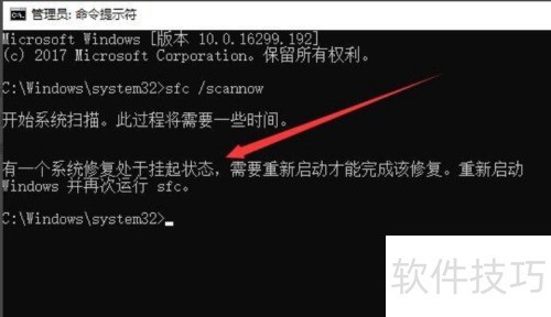 5、 系统出现问题时将提示修复已挂起,此时需重启计算机以完成修复操作。