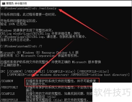 7、 若仅需扫描系统以检查问题,可运行Sfc /Verifyonly命令进行检测,无需立即修复。