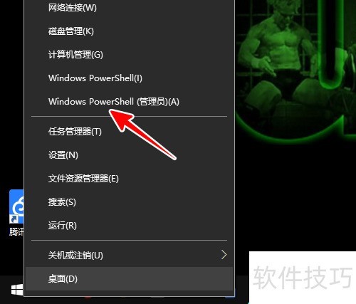 8、 右键点击Win图标,从菜单中选择以管理员身份运行Windows PowerShell。