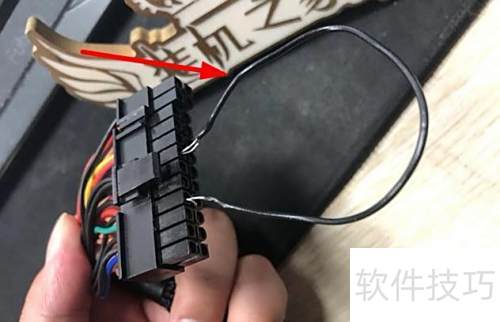 2、 需在电源24针插头上找一根导线,将其两端分别插入绿色线和任意黑色线对应的空插孔中,实现导通。