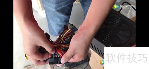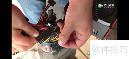 2、 找出电源线中最长的24针线缆,内含绿、黑、红等颜色,仅需分离出绿色和黑色的导线。