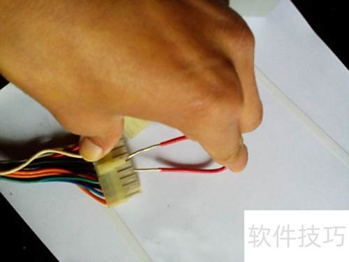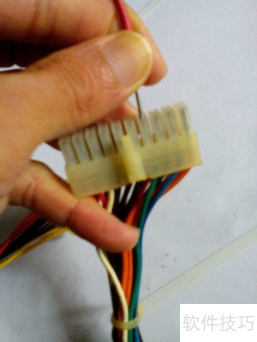 3、 使用电脑电源的24P接口(旧款为20P),将导线一端插入绿色线对应的插孔。电源输出电压为5V,操作安全,可放心进行。
