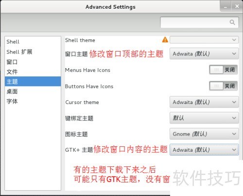 6、 随后,重新进入之前的gnome-tweak-tool设置界面。