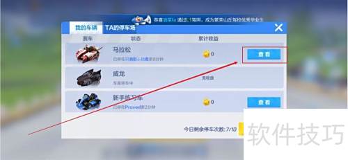 6、 在个人车辆页面点击查看,进入对方停车场后再次点击查看,进入详情页后点击向下的图标即可取回车辆,操作步骤所示。