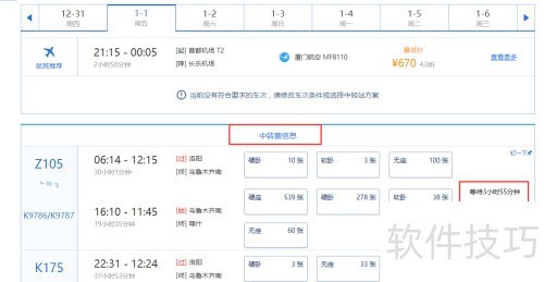 8、 若无直达火车,可查看中转票详情,信息全面详尽,便捷实用,就选它了。