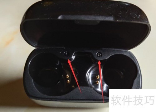 3、 将耳机放入充电仓指定位置,自动开始充电,同时耳机进入关机状态。