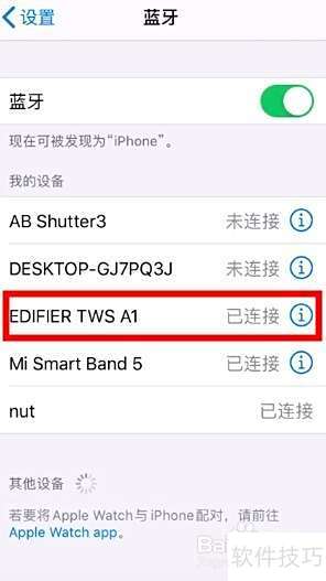 4、 当耳机名称出现在蓝牙列表并成功连接后,即可正常使用。