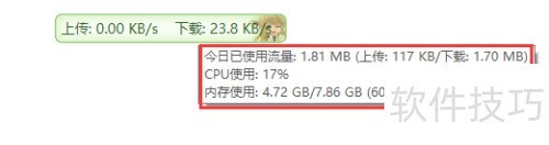 12、 将鼠标悬停在TrafficMonitor对话框上,即可查看实时网络流量及CPU、内存使用状态。以上便是TrafficMonitor在Windows 10系统中的完整安装与使用方法。