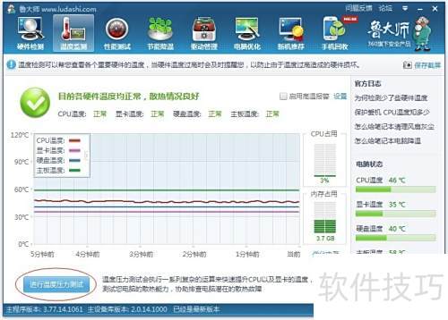 29、 使用鲁大师进行温压测试,分别持续10分钟、20分钟和30分钟,观察系统稳定性与温度变化情况。