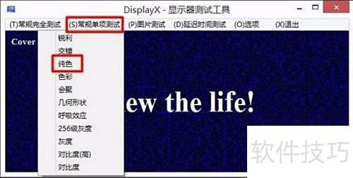 6、 通过DisplayX软件可检测屏幕是否存在坏点、亮点或严重漏光等问题。运行软件后,进入常规单项测试中的纯色模式,依次显示黑色、红色、绿色、蓝色、黄色、白色等纯色画面,仔细观察屏幕表现。在纯黑背景下亮点尤为明显,而其他异常像素则在不同颜色下易于辨识,从而全面判断屏幕显示质量。