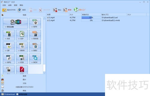 3、 在左侧选择目标格式,添加文件并指定输出文件夹,确认后即可批量转换多个文件。