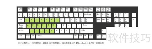 3、 进入键盘测试界面后,轻敲按键,通过观察对应键位是否出现高亮来判断键盘工作是否正常。