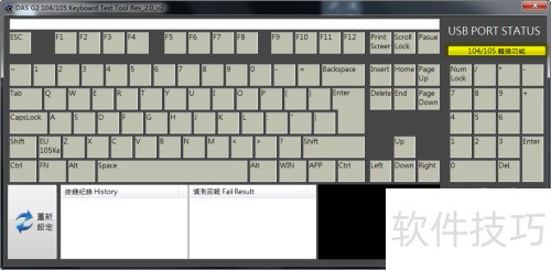 6、 当某个键正常按下变为红色时,右下角检测栏会同步显示相同状态。