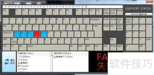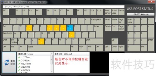 5、 敲击E键两次,软件需准确显示两次,多或少均为异常。