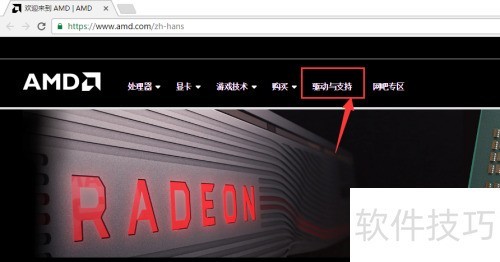2、 官网首页点击驱动与支持,所示。