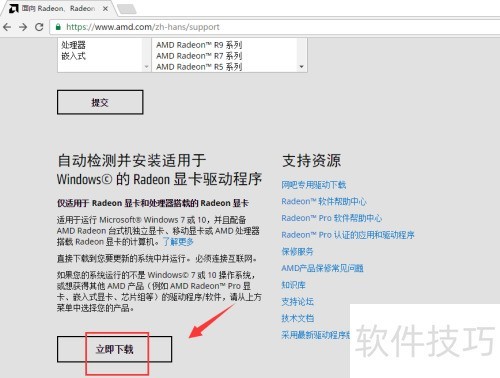3、 在支持页面下拉至自动检测工具,点击立即下载,操作所示。