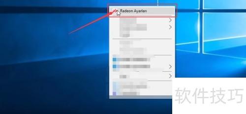 2、 进入电脑桌面后,在空白处右键单击,从弹出菜单中选择Radeon选项,部分AMD显卡版本可能直接显示为显示卡设置。