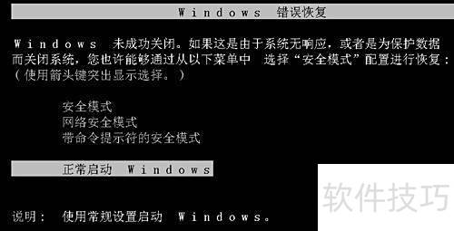 2、 重启后系统提示上次未正常关机,选择正常启动可顺利进入桌面,由此推测主机运行正常,可能仅为显示异常,并非真正死机。
