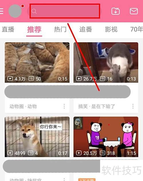 2、 在页面顶部的搜索栏内输入关键词,查找感兴趣的视频内容。