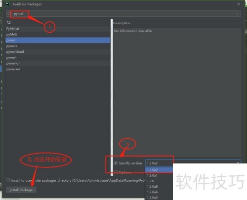 9、 搜索pymel,在版本选择中指定最新版1.3.0a2,随后点击安装按钮完成安装。