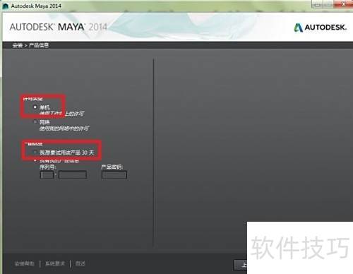 4、 随后点击安装,可选择试用30天,也可输入序列号和产品密钥,然后点击下一步继续操作。