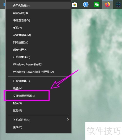 3、 右键点击开始菜单中的文件管理器即可使用第二种方法。
