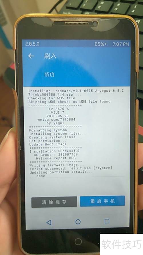 4、 打开手机设置中的关于手机,连续点击版本号启用开发者模式,进入开发者选项开启USB调试,连接电脑后即可刷入recovery程序。