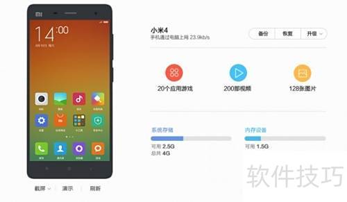 2、 现将个人实测的移动版小米四从MIUI 6降级至MIUI V5的简便安全方法分享如下:首先在电脑上安装最新版小米手机助手,随后通过数据线连接待降级的小米手机。打开软件后选择升级中的刷机功能,根据界面提示将手机切换至fastboot模式。此时助手会自动识别设备,并下载适配该机型的稳定版系统(当前默认为MIUI V5)。整个过程无需手动操作,只需保持连接稳定,耐心等待刷机完成即可,操作简单且风险较低。