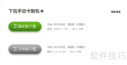 2、 选择需下载的卡刷包版本,可选稳定版或开发版。