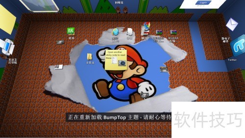 1、 从百度下载并安装BumpTop软件,运行后桌面将呈现立体效果,点击任意墙面,双击即可切换至其他墙面,操作直观便捷。
