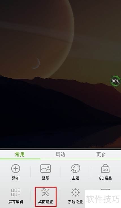 2、 启动GO桌面后,点击手机菜单键,从选项中选取桌面设置进行配置。