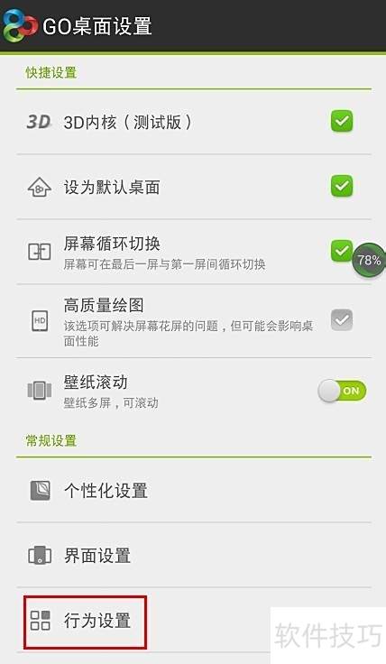 4、 在常规设置中选择行为设置,操作所示。