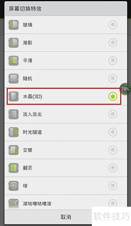 5、 进入桌面设置,找到屏幕切换特效,选择水晶3D效果即可。