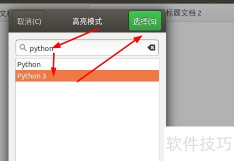 9、 在代码高亮功能中查找python,然后选择Python3环境。