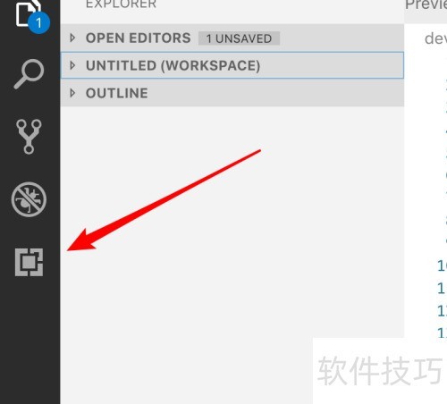 1、 启动VSCode,点击左侧边栏的扩展按钮即可。
