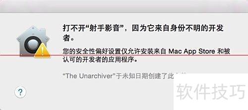 2、 双击打开时会弹出安全提示,因射手 for Mac 与 macOS 系统理念不符,自 2013 年最后一次更新后便停止维护,导致其应用签名早已失效。