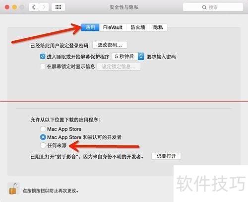 20、 安装射手 for mac时,需在系统安全设置中允许任意来源。添加至白名单后,请及时关闭此选项,以保障系统安全。